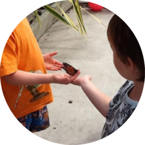 Tamariki have experimented with different methods to find the best way to capture caterpillar eggs and transfer them into the butterfly house. They tried taking eggs from the swan plants outside and raising them inside before transferring them. Sometimes this was successful, however, it took a lot of work as the leaves needed to be kept damp at all times. They tried waiting until the eggs hatched on the outside plants before transferring the newly hatched caterpillars into the house. Sometimes the predators got to them first! The most successful method has been to carefully capture the female butterfly and place her into the house so that she can lay directly onto the plants. Tamariki have loved this experience and can regularly be heard calling for a kaiako to capture a butterfly when they see one in the garden.