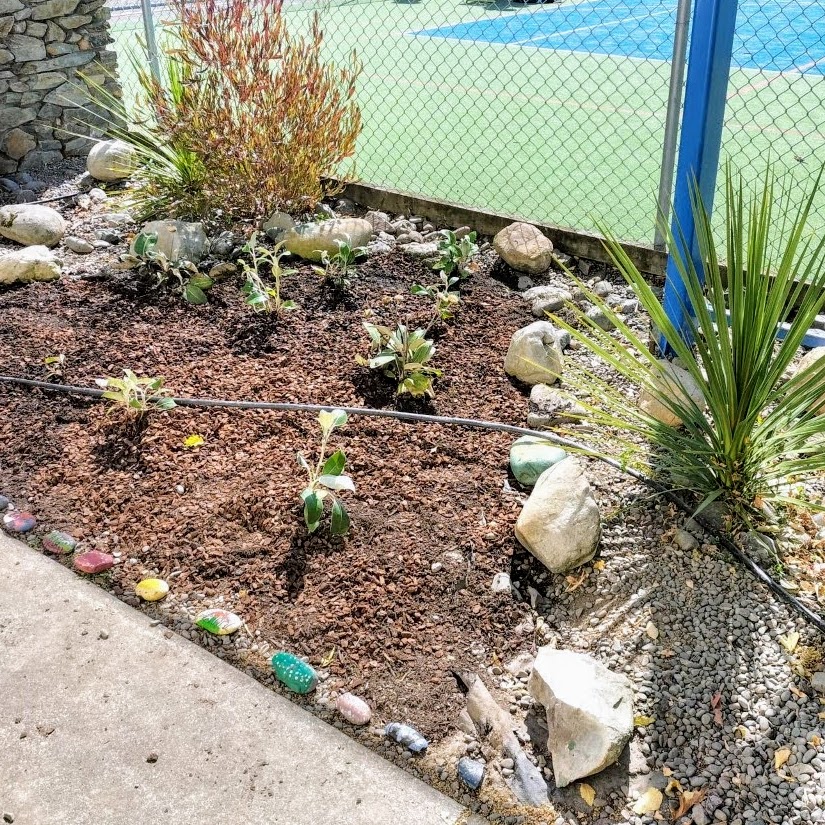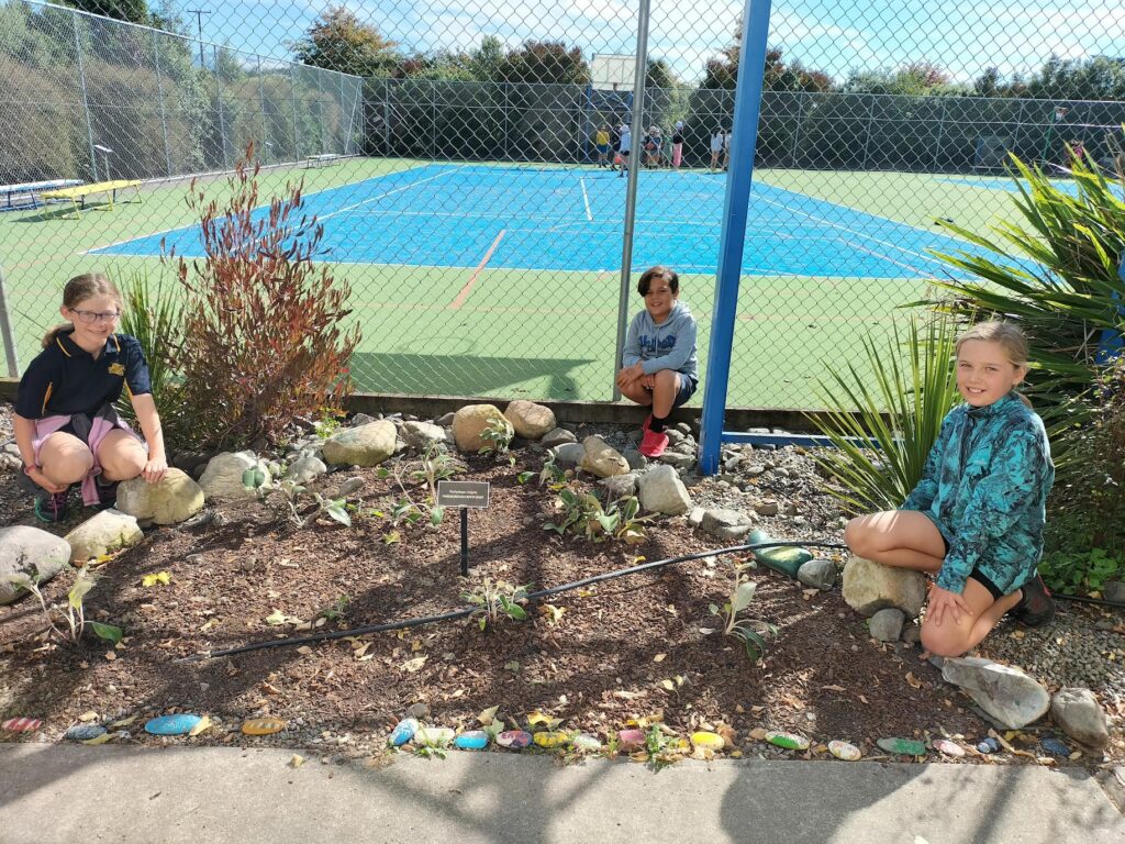 Fairhall School has a meandering native garden created to grow beside a stream space that only has water in it for part of the year. It has a bridge over this space and is an area the school highly values. Over the years it has been added to and this time it was the native garden entrance that got a makeover. One of the senior classes and their teacher has been busy doing some planning and work to the entrance. They recently overhauled the Marlborough Rock Daisy garden at the entrance to the garden/ngahere. As part of this space they have created a bark mountain to represent the school maunga: The Ned (Te Hau) and then planted within and around this. Take a look at how cool this now looks and is a more fitting entrance to their special place.