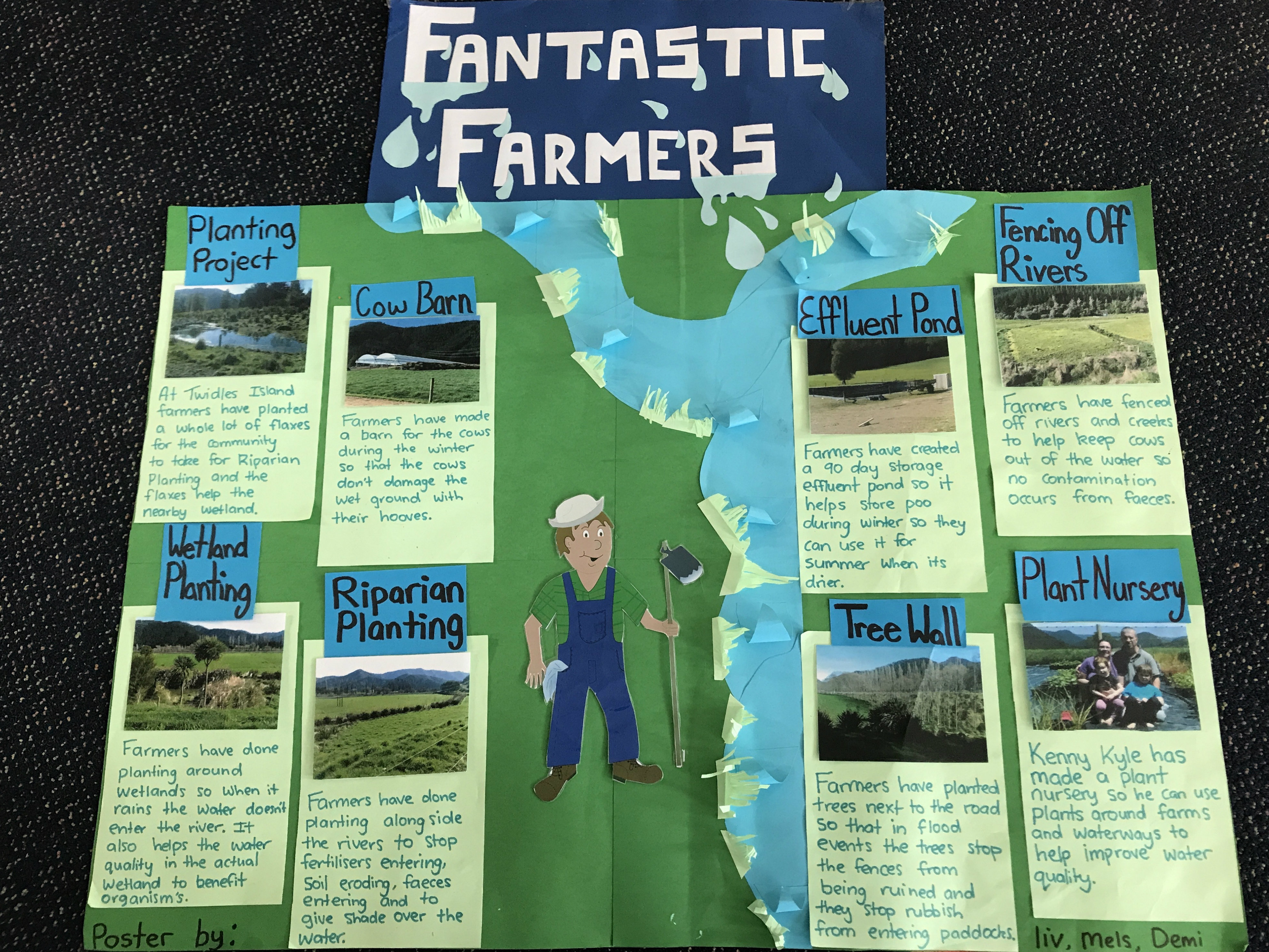 The Year 13 Enviro Class at Rai Valley Area School made this poster (and scones!) to highlight the wonderful work that local farmers are doing to improve water quality in the area.