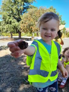 Haylee showing the treasure that she has found whilst at Oliver Park