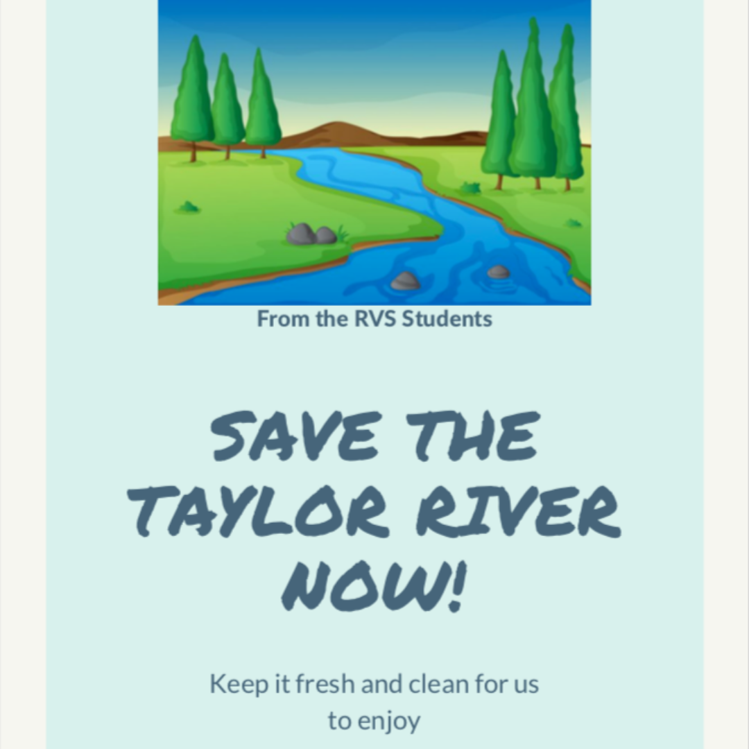 A number of schools take an active and ongoing role in caring for the Taylor River: whether through regularly picking up rubbish in the area or by spreading messages of how we can take better care of this special place.  Students often make signs, artwork or posters to share with the wider community: like these ones made by students from Richmond View School after they did a stream study at the river in Term 1.