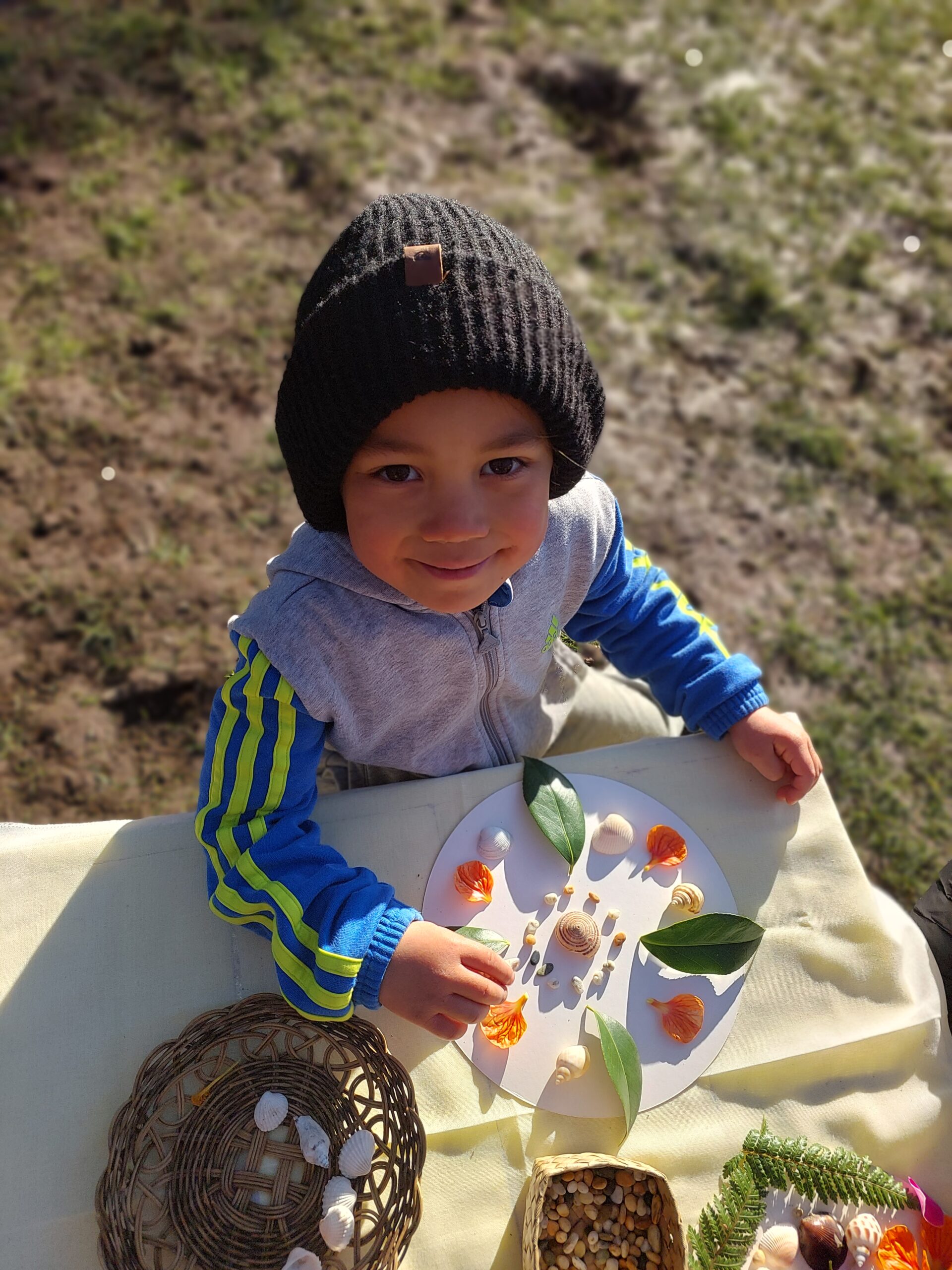 Montessori Blenheim children recently explored Mandalas – a geometric design that holds a great deal of symbolism for Hindu and Buddhist cultures. It is believed that by entering the mandala and moving towards its centre, you are guided through the ‘cosmic process’ of transforming the universe from suffering to joy and happiness. Montessori believes ‘We shall walk together on this path of life, for all things are part of the universe, and are connected with each other to form one whole unity’. This concept is represented through the symbolism of Mandala and through the circular nature of the designs. The children reflected on their connection with nature through their own designs. We engaged in rich discussions around the feelings that stirred within them – a sense of balance, peace and calmness. Their designs parallel the cycles and rhythms we find in nature, the seasons, moon phases, tides and indeed every living cell.