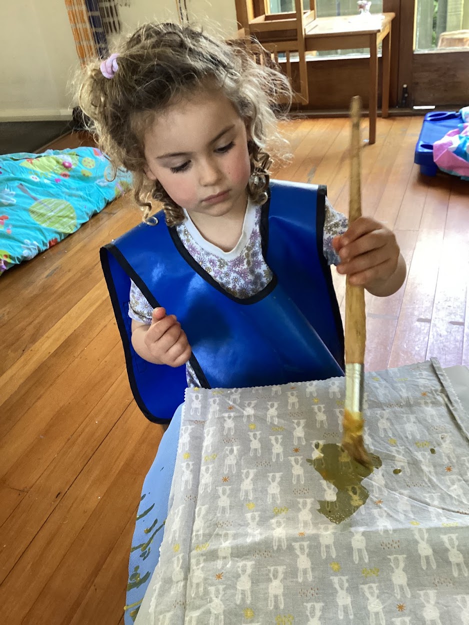 During Keep New Zealand Beautiful Clean Up week, the tamariki at Montessori explored ways to care for Papatūānuku by making their very own beeswax wraps. The tamariki were fascinated as the kaiako introduced the idea of replacing plastic wrap with a natural, reusable alternative—beeswax wraps. Each child selected their own piece of fabric, and together they melted the beeswax. With careful hands, the tamariki used the brush to paint the fabric with wax. They then watched it transform into something that could be used over and over again to wrap their kai in.