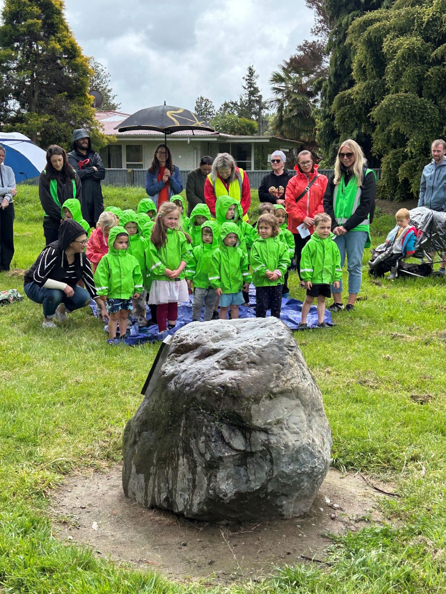 On the 29th of October the first ECE written poem was unveiled to be a part of the Taylor River Writers Walk. Huddled under umbrellas next to the Old Mill on the Taylor River the rain didn’t put anyone off. Students from both Springlands School and Mayfield Kindergarten opened the celebration with waiata. Several speeches followed to acknowledge how special this addition was to an already very well valued part of the Taylor River.
