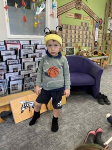 Following that, one lucky student got to be a honey bee and visit some flowers. Wearing a headband with antennas and some wooly socks, they buzzed from flower to flower exchanging pollen (gold and white pompoms) from each flower and their socks. Once the flower had been “pollinated” it was turned over to reveal the kai that had grown – demonstrating the process of pollination.